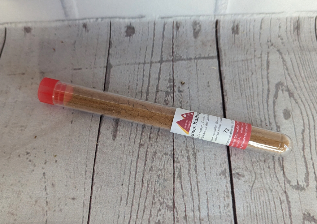 Zutaten: Cardamon, Zimt (Cassia), Nelken, Piment, Muskatnuss, Bourbon-Vanille, Pfeffer.