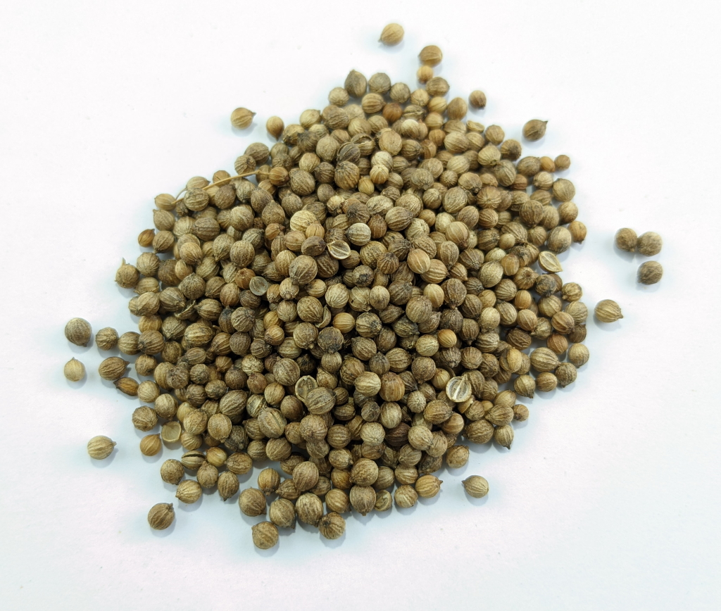Die Samen des Koriander sind kugelförmig und süßaromatisch.