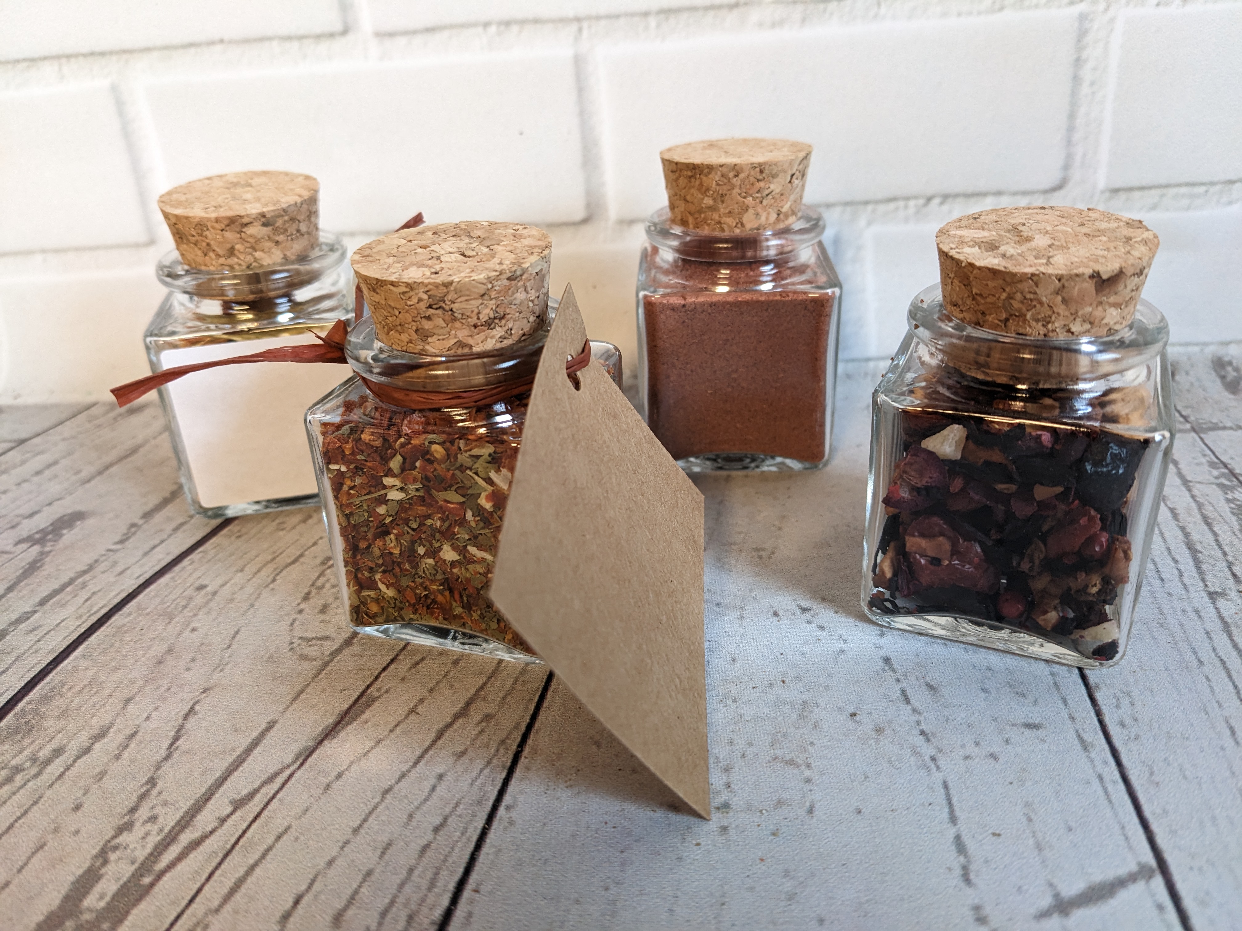 Diese wunderschönen kleinen Korkgläschen passen einfach zu jeder Hochzeitsdeko.
