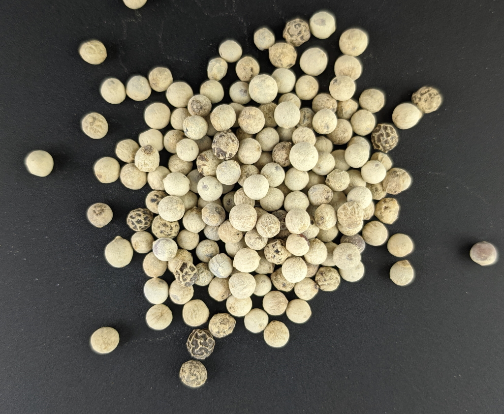Da die Hauptaromen in der Schale liegen, die dem weißen Pfeffer fehlen hat er zwar eine hohe Schärfe ihm fehlen aber die Aromen anderer Pfeffersorten.