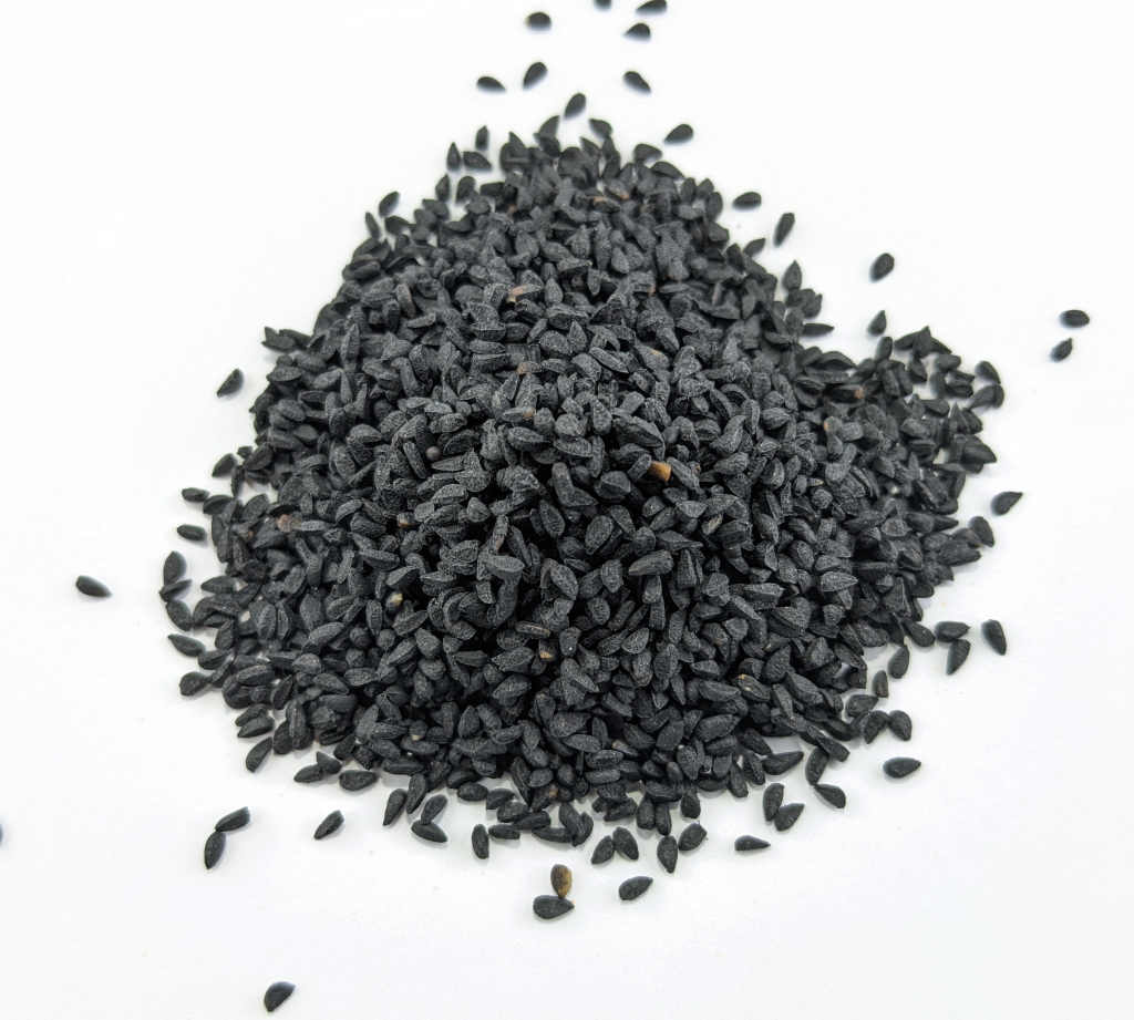 Schwarzkümmel wird auch als ägyptischer Kümmel oder Nigella bezeichnet. Er ist anders als Kümmel oder Kreuzkümmel eher rund als länglich.
